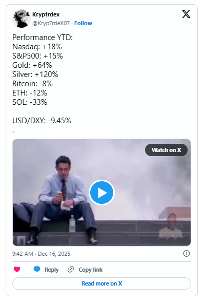 As 2025 winds down, capital is rotating out of Big Tech and AI into financials, industrials, and materials. Historically, such flows boost liquidity into Bitcoin, Ethereum, and altcoins. With tech outflows hitting back-to-back weeks and macro tailwinds emerging, crypto traders may get a sneak peek at 2026’s risk appetite.