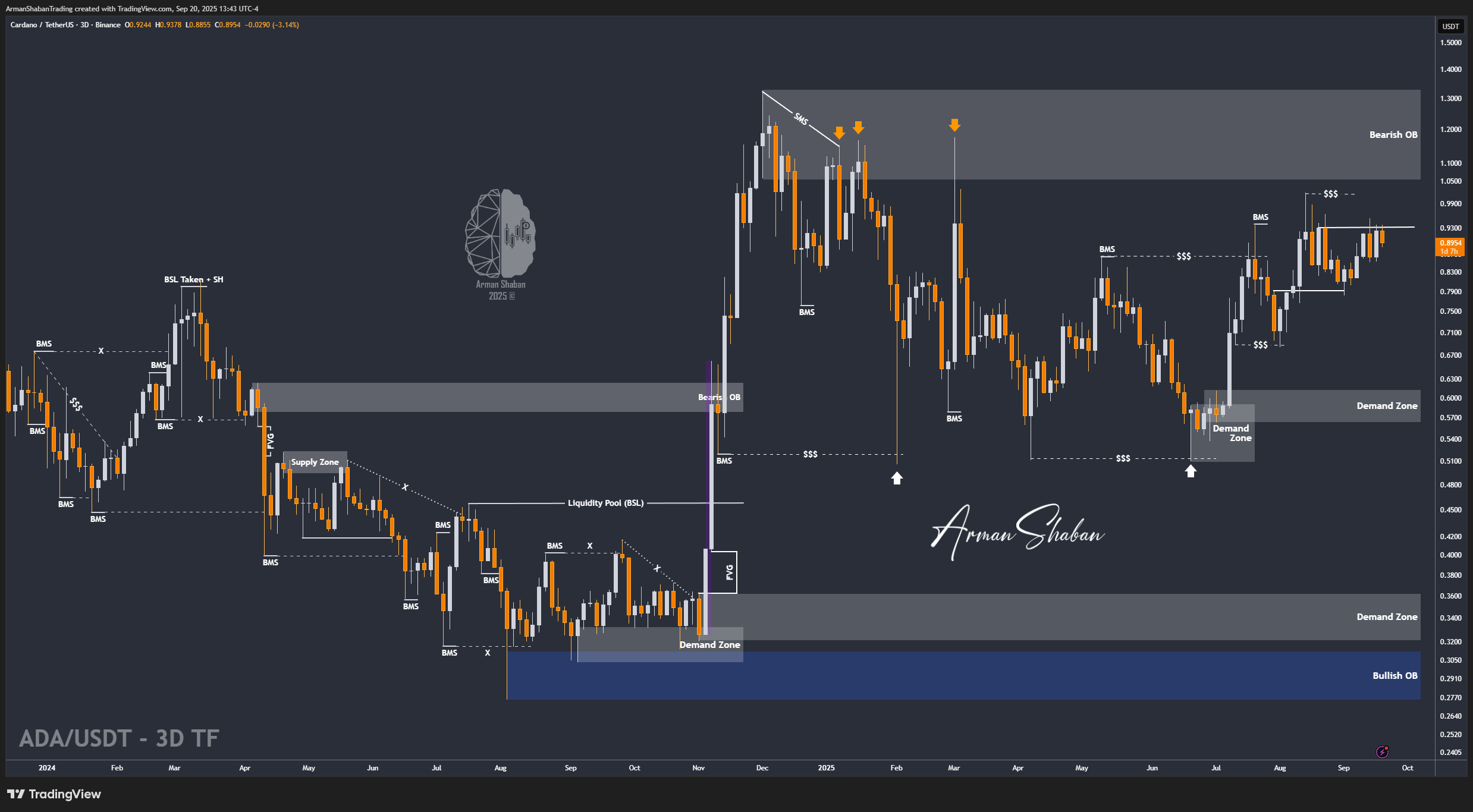 ADA is still holding around the $0.89 level, and the overall outlook from the previous analysis remains valid. The $0.93 resistance continues to act as a key barrier, and a breakout above it is still required to confirm a stronger bullish leg toward the upside targets.
