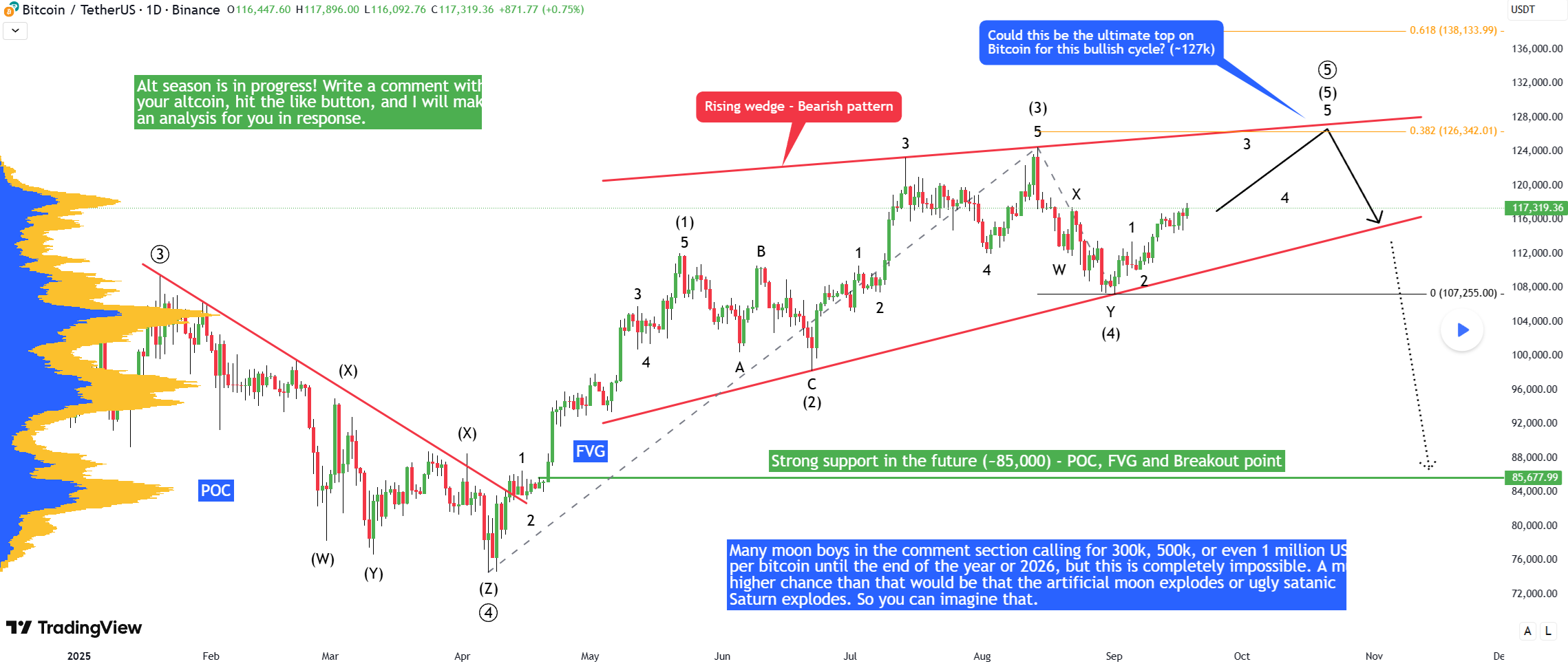 Bitcoin - New rising wedge, you must see! 127k, then drop to 85k